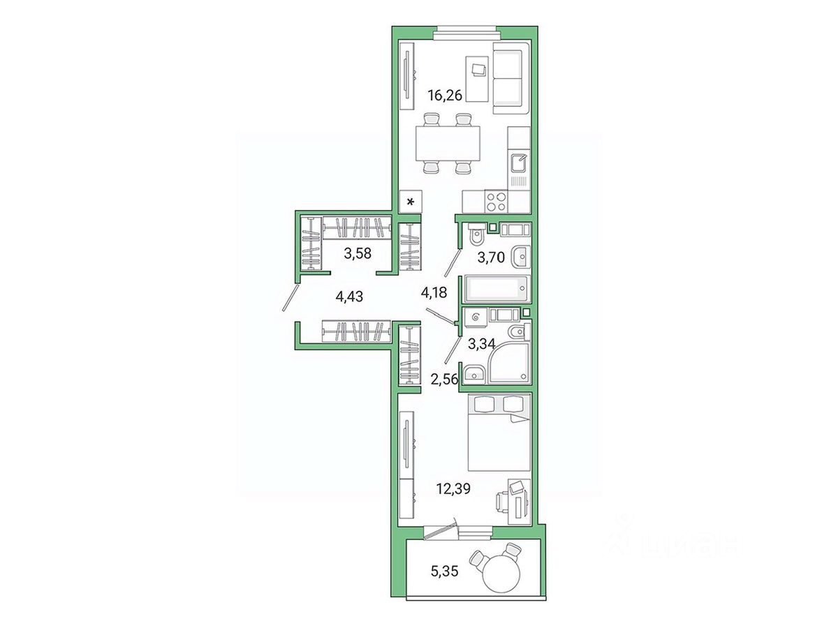 53,4 м²