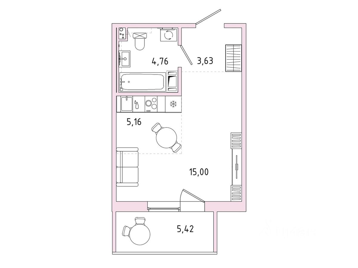1 лоджия, 1 балкон