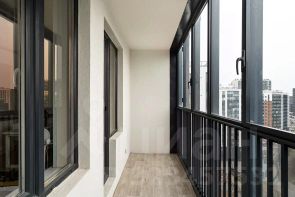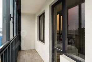 Большая лоджия 6.7 кв.м с панорамным остеклением. Можно использовать как дополнительное место хранения, зону отдыха или работы. Есть розетка.