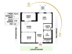 Удобная планировка, высокие потолки 2,9 м., 2 больших окна и комфортный 4 этаж из 4 с панорамным видом.