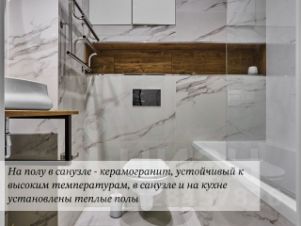 В квартире выполнен качественный ремонт из прочных материалов. В квартире установлены теплые полы на кухне и в санузле, есть стиральная машина в постирочной, кухня оснащена всей необходимой техникой (индукционная плита на 4 конфорки, духовка, холодильник, морозильный шкаф, полноценный кухонный гарнитур с встроенными шкафчиками и местами для хранения).