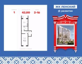 Продается 1-комнатная квартира 42 кв.м. на 15 этаже. В продаже квартира в жилом комплексе комфорт-класса "Ленский".