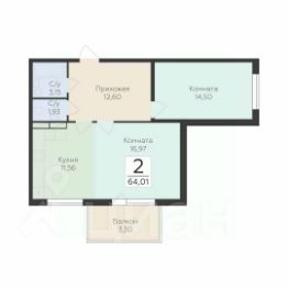 Продается 2-комнатная квартира 64,01 кв.м. на 5 этаже. В продаже квартира в жилом комплексе комфорт-класса "Финский квартал".