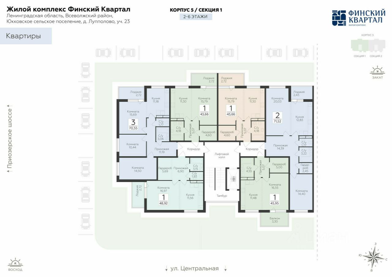 Продается 1-комнатная квартира 43,66 кв.м. на 3 этаже. В продаже квартира в жилом комплексе комфорт-класса "Финский квартал".