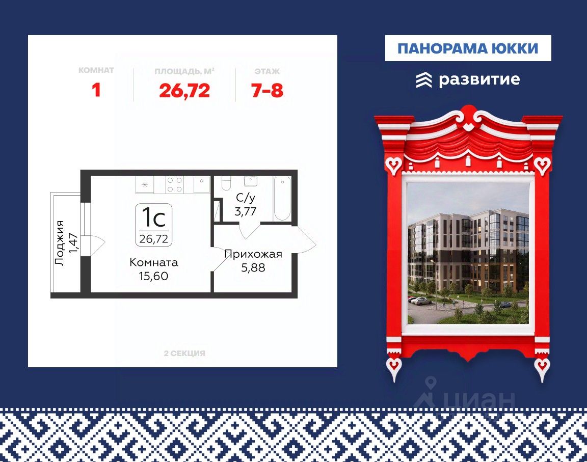Продается студия 26,72 кв.м. на 8 этаже. В продаже квартира в жилом комплексе комфорт-класса "Панорама Юкки".