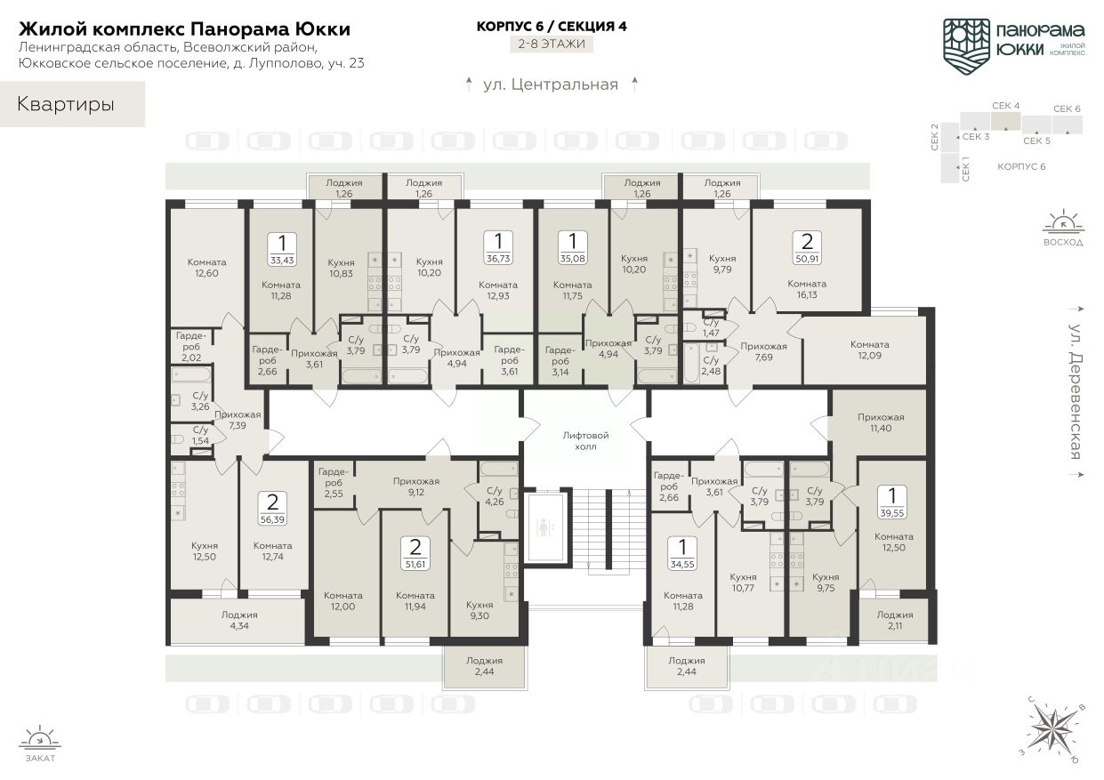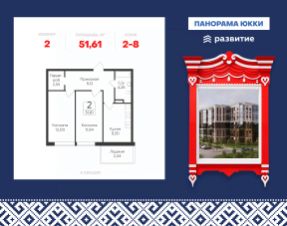 Продается 2-комнатная квартира 51,61 кв.м. на 8 этаже. В продаже квартира в жилом комплексе комфорт-класса "Панорама Юкки".