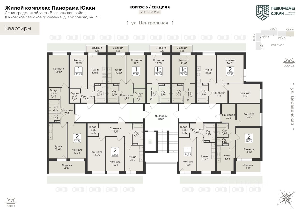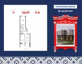 Продается 2-комнатная квартира 56,37 кв.м. на 6 этаже. В продаже квартира в жилом комплексе комфорт-класса "Панорама Юкки".