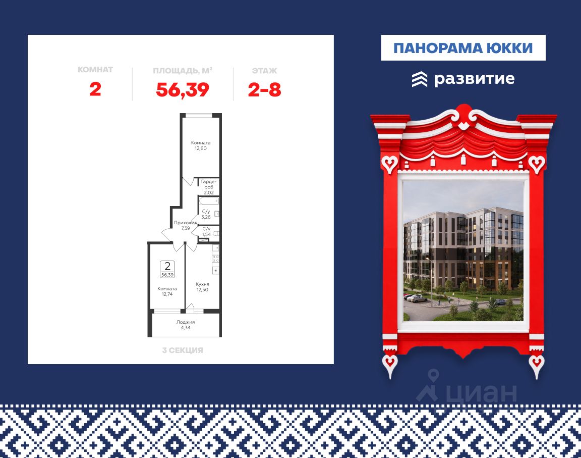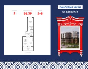Продается 2-комнатная квартира 56,39 кв.м. на 4 этаже. В продаже квартира в жилом комплексе комфорт-класса "Панорама Юкки".
