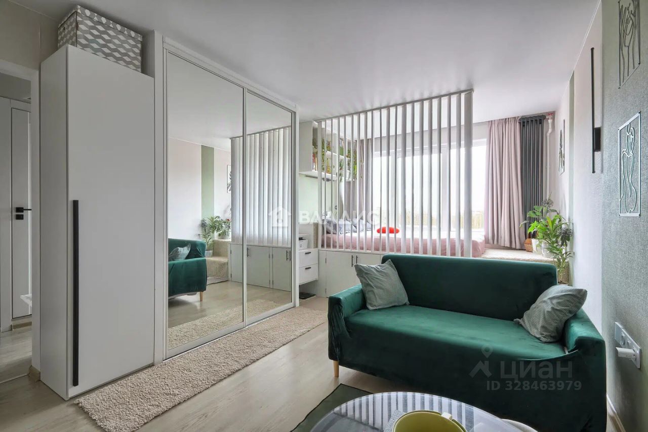 Квартира расположена на 9 этаже 9-этажного панельного дома 1972 года постройки. Общая площадь составляет 30,4 кв. м, жилая — 17,9 кв. м, площадь кухни — 6 кв. м. Высота потолков 2,7 м создаёт ощущение простора. В квартире выполнен дизайнерский ремонт, что делает её готовой для комфортного проживания без дополнительных вложений.