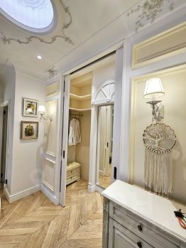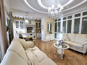 Каждая деталь этой квартиры продумана до мелочей: окна, наполняющие пространство светом, каскадное освещение, которое создаёт особую атмосферу в любое время суток, декоративная штукатурка (шелкография), напольное покрытие - инженерная доска из дуба, премиальная сантехника, итальянская плитка, качественная бытовая техника (Германия) и многое другое.