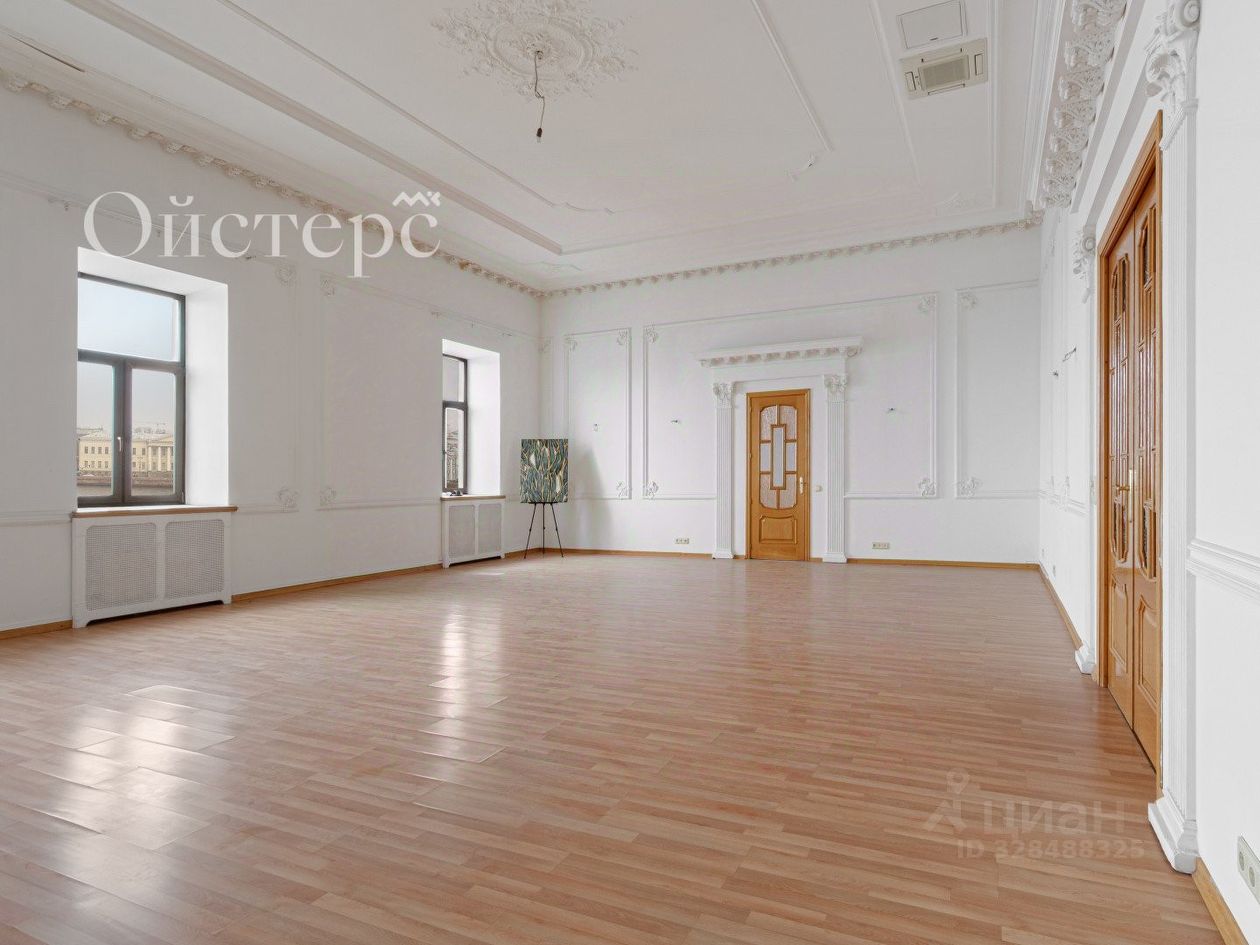 Арт. 133313317 Пятикомнатная квартира площадью 321 м² на четвёртом этаже исторического дома на Адмиралтейской набережной — между Зимним дворцом и Исаакиевской площадью.