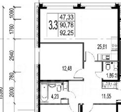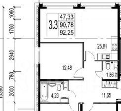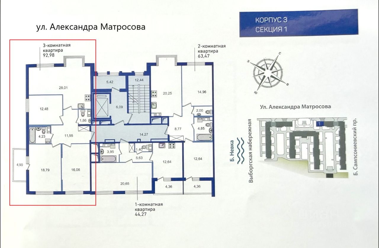 Комнаты: Три изолированные комнаты — 12,48 м², 18,79 м² (с выходом на балкон), 16,06 м².