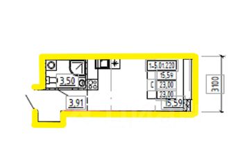 Площадь 23 м² с высокими потолками 3,6 м — ощущение пространства и воздуха.