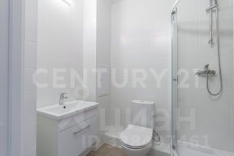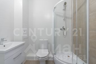 Санузел: керамогранит, душевой угол, раковина, смесители, регулируемый полотенцесушитель