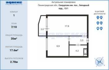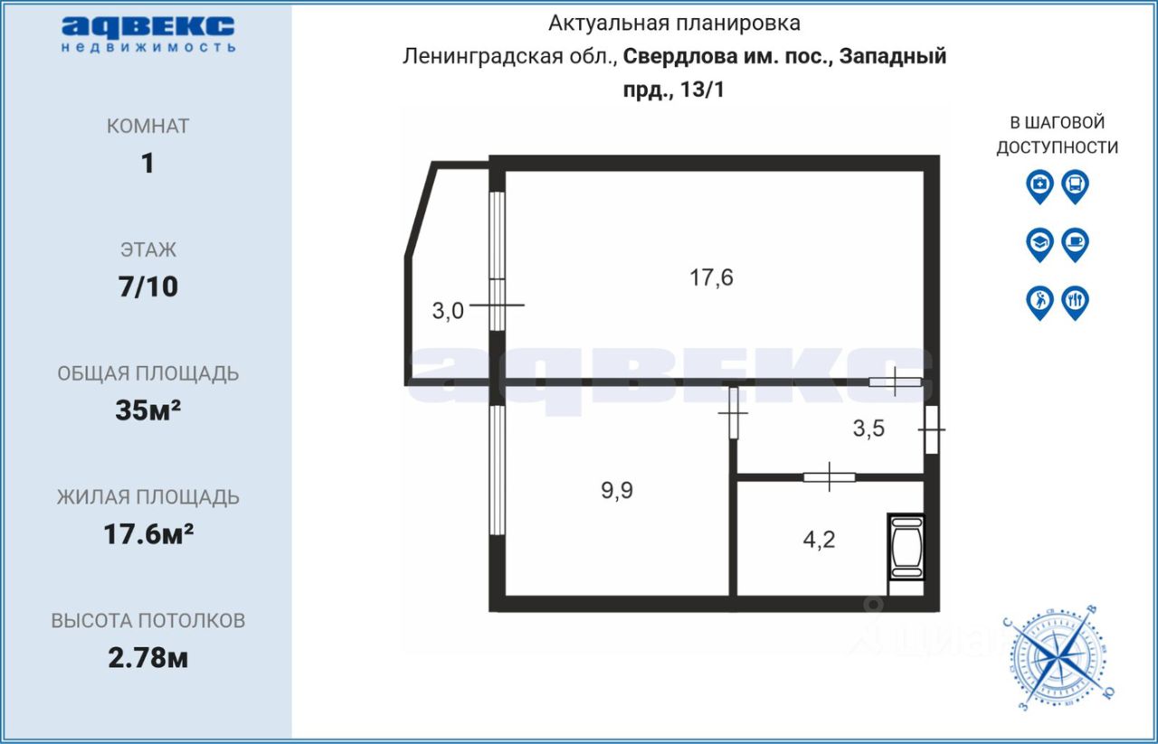 Площадь: общая 35 кв.м. + застекленный балкон 3,0 кв.м.