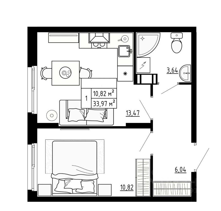 Квартира без ремонта, что дает вам возможность оформить её по своему вкусу и создать идеальное пространство для проживания. Просторная кухня площадью 13.5 кв. м. позволяет обустроить функциональное и комфортное место для приготовления пищи и семейных обедов. Жилая площадь составляет 10.8 кв. м., а окна выходят во двор, поэтому в квартире всегда будет тихо и спокойно. Совмещенный санузел добавляет удобства.
