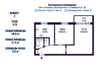 улица Софийская, на которой расположен дом 55, славится близостью к двум станциям метро Международная и проспект Славы, до которых можно пройти прогулочным шагом минут 20-25 по приятным дорогам, близостью МФЦ, магазинов Пятерочка и Дикси, при этом в 10 минутах ходьбы ТРЦ Южный.