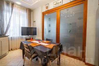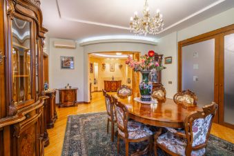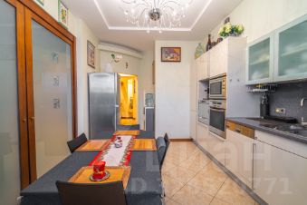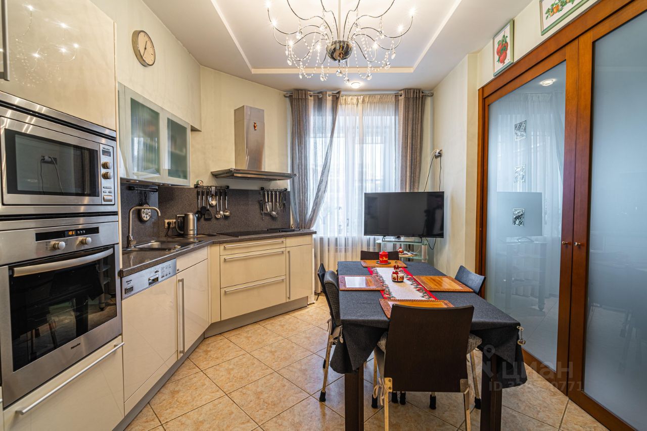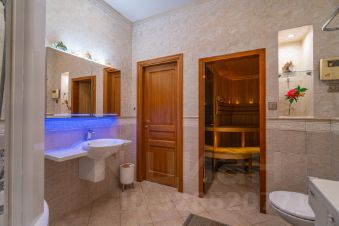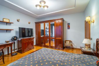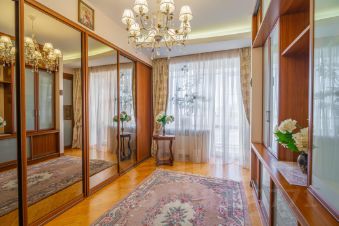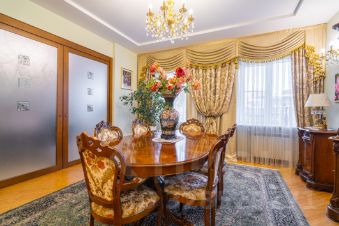 Общая площадь квартиры составляет 145 кв. м, три комнаты площадью 20,4+20,8+21.1кв. м, а кухня гостиная поражает своими размерами — 42,3 кв. м. 2 сан.узла, сауна, 2 гардеробные, застекленные лоджия и балкон общей площадью 15 метров, откуда открывается панорамный вид. Квартира находится на 6 этаже 7-этажного дома с высотой потолков 3 метра, что добавляет простора и света. Окна выходят как на улицу, так и во двор, поэтому в квартире всегда светло и уютно.