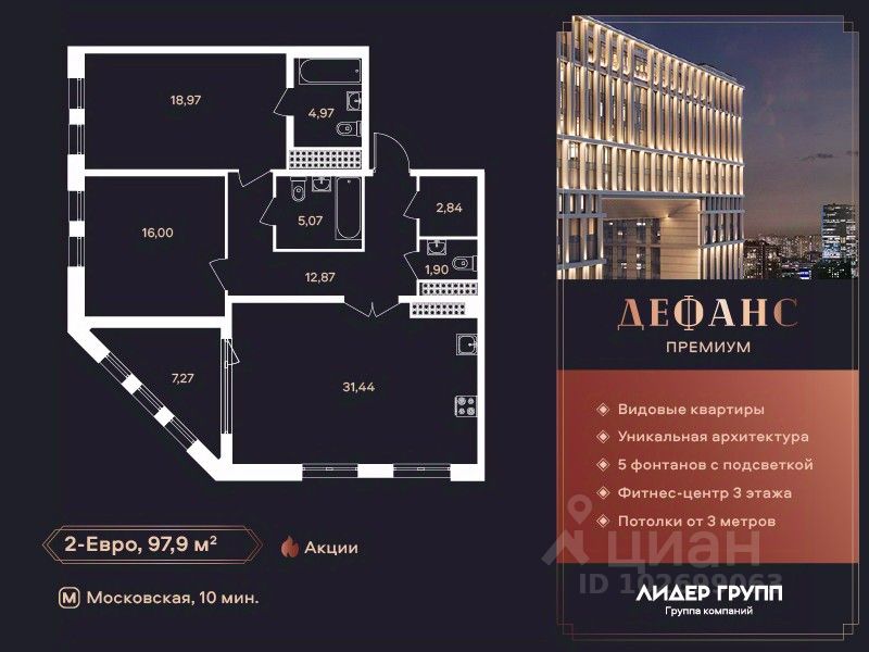 ЖК "Дефанс Премиум". Строительство завершено. Дом получил заключение о соответствии и готовится к вводу! Это проект авторской архитектуры с уникальными форматами квартир в 10 минутах ходьбы от станции метро "Московская". Дом выполнен в виде двух 23-х этажных арок, основания которых объединены единым внутренним пространством с большой парадной лестницей, променадом и большим фонтанным комплексом с подсветкой. В составе проекта построен большой фитнес-центр с бассейнами и зоной СПА. Часть квартир отделена от остальных жилых этажей специальным техническим этажом — это снимает все ограничения по перепланировке. Для части квартир предусмотрены индивидуальные входные группы и дополнительные лифты премиального немецкого бренда Tyssen Krupp (TKE). Фасады, облицованные испанской керамикой и алюминиевые панорамные окна с энергоэффективными стеклами AGС Energy подчеркивают высокий статус дома. На квартиры ЗПИФ и переуступки семейная ипотека не распространяется!