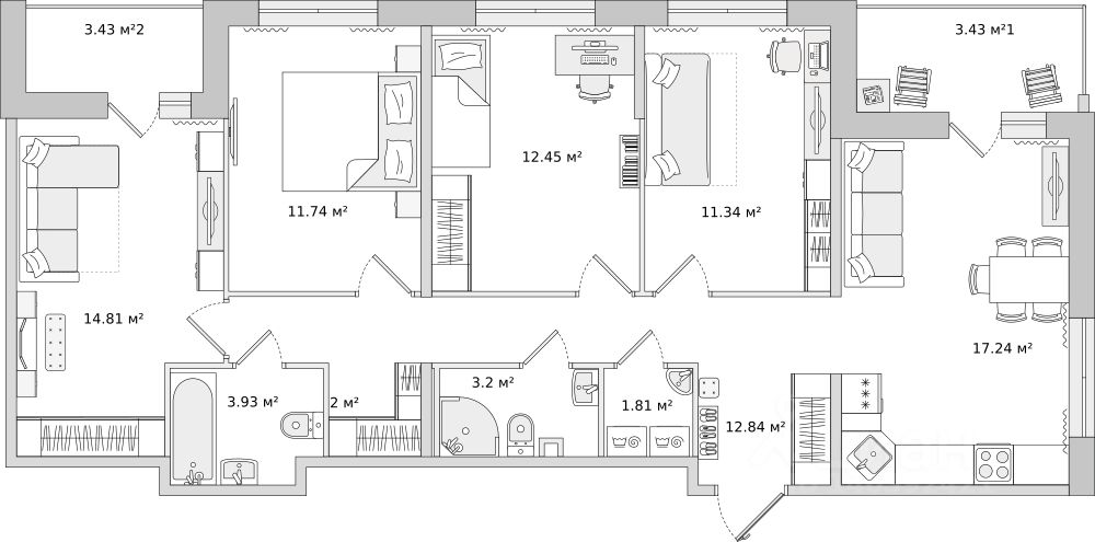 Продаётся трёхкомнатная квартира в жилом комплексе ЦДС Dreamline, Корпус 2.6