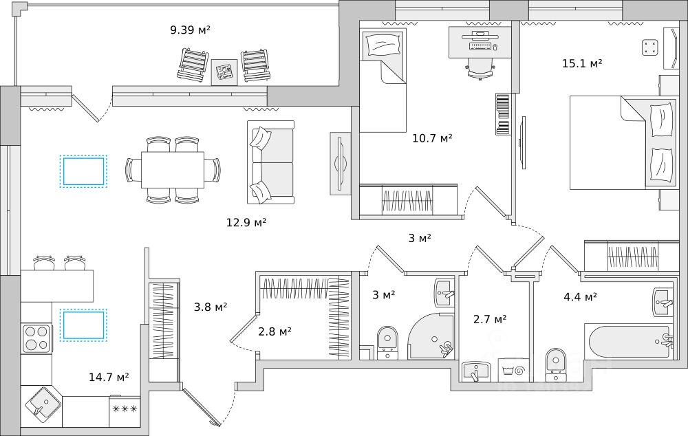При покупке квартиры без участия агентов дарим сертификат новосела в магазин ХОФФ на сумму 50 000 рублей. Им можно оплатить не более 15% от суммы покупки.