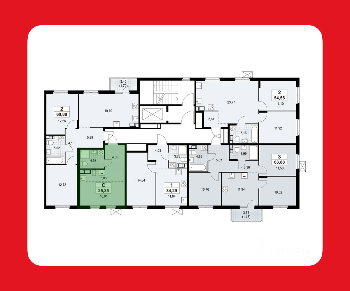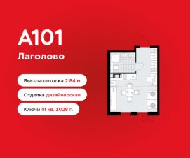 Студия площадью 25.35 в ЖК "А101 Лаголово" на 7 этаже. Квартира с отделкой. Вид из окна на улицу. В квартире 1 санузел. Высота потолков 2.84 м.