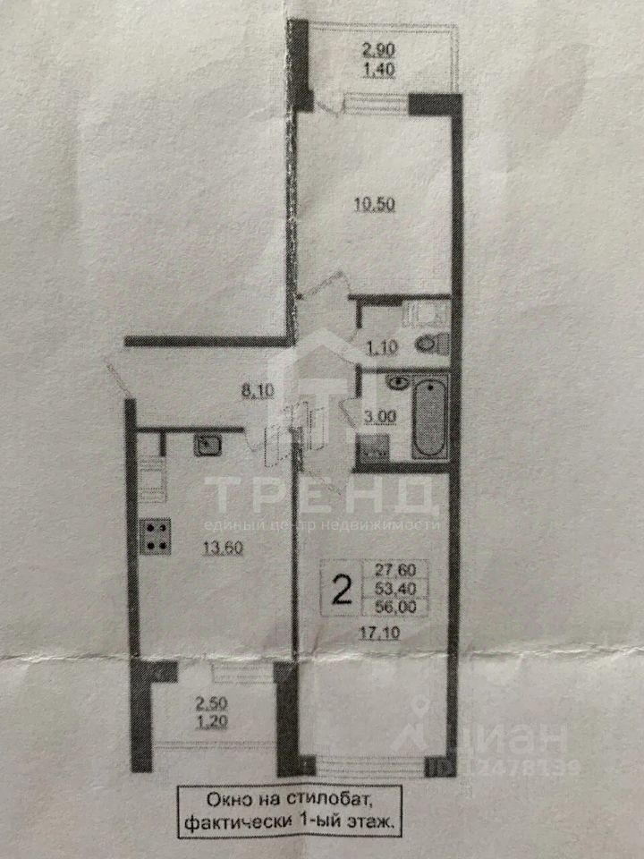 Квартира расположена на втором этаже 25-этажного кирпично-монолитного дома, построенного в 2018 году. Общая площадь квартиры — 53,4 кв. м, из которых 27,6 кв. м приходится на жилую площадь. Две изолированные комнаты с площадью 17,1 кв. м и 10,5 кв. м обеспечивают комфорт и уединение. Высота потолков в 2,8 м создаёт ощущение простора.