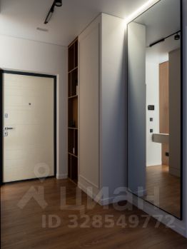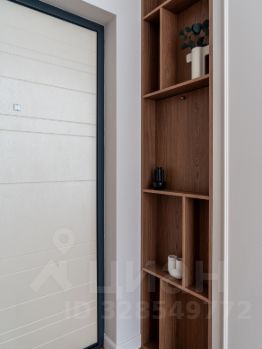 На входе очень вместительный шкаф с фасадами под потолок. Декоративные деревянные вставки, прячут за собой коммуникации и электрощиток.