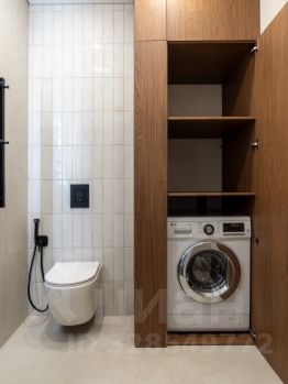 Так же располагается большой вместительный шкаф, в котором уже установлена стирально-сушильная машина (за счет съемных полок, предусмотрена возможность установки полноценной сушильной машины - при необходимости!)