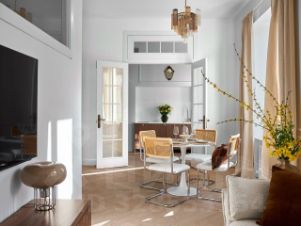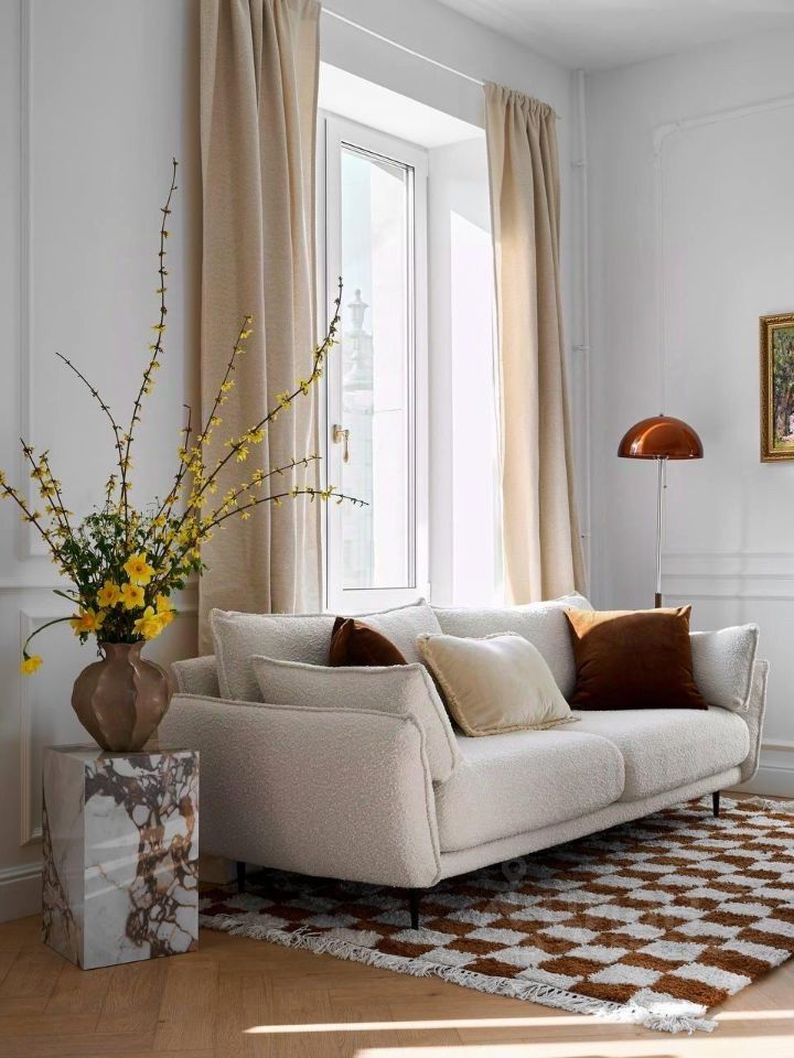 Интерьер выполнен в нейтральной гамме — пространство выглядит больше и легче, а вы легко сможете адаптировать его под себя, меняя акценты