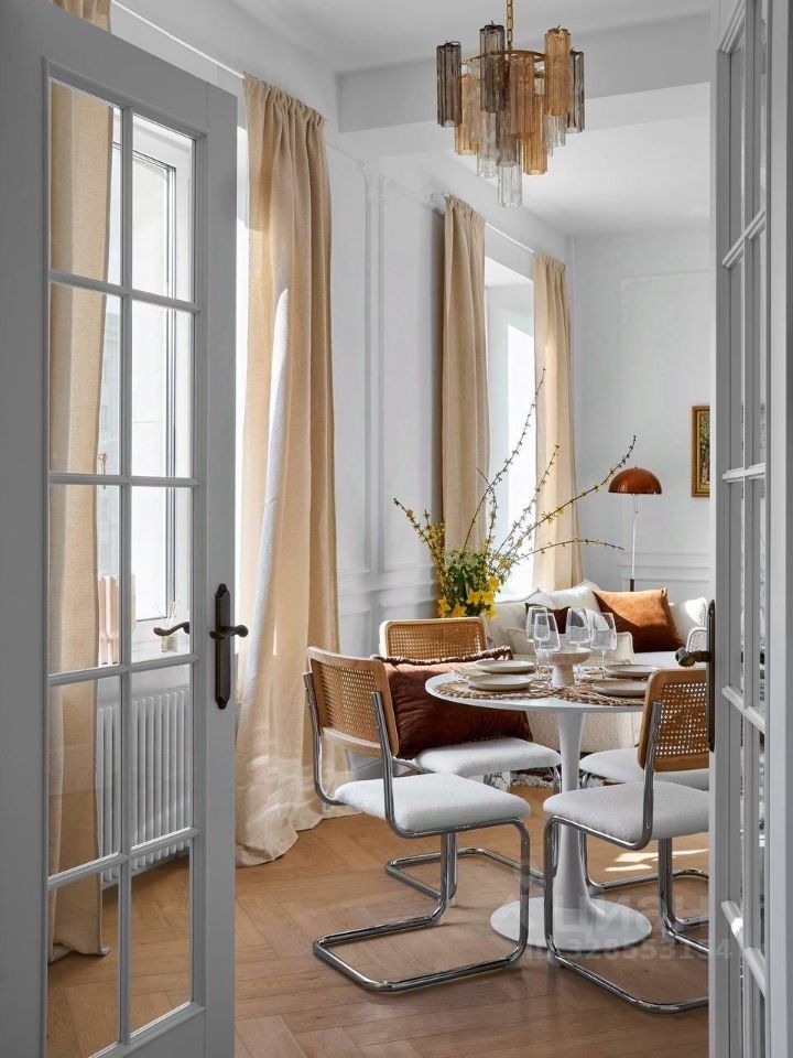 Светлая и просторная гостиная с двумя окнами наполняется естественным светом в течение всего дня, создавая ощущение воздуха и свободы