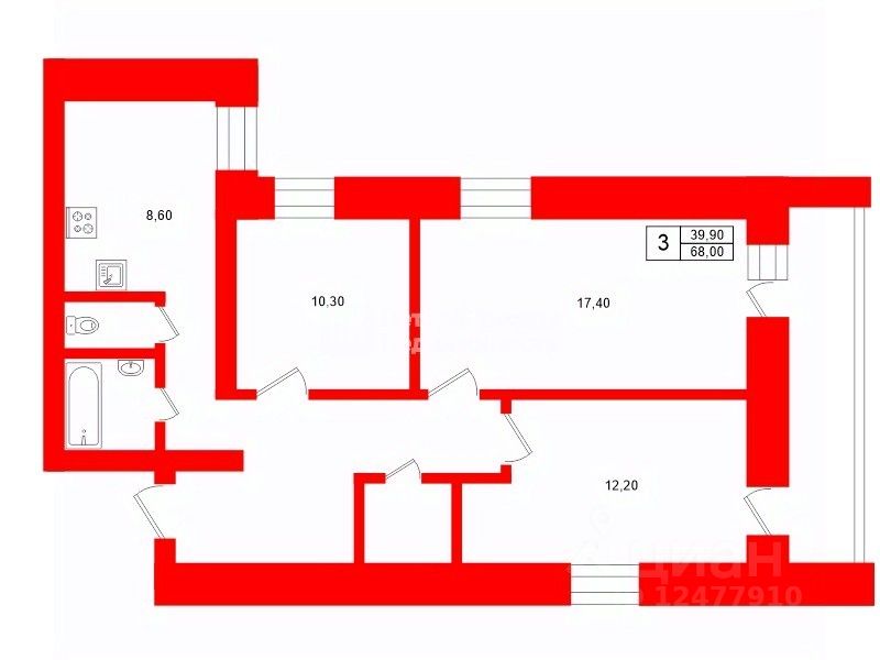 Общая площадь68 м²