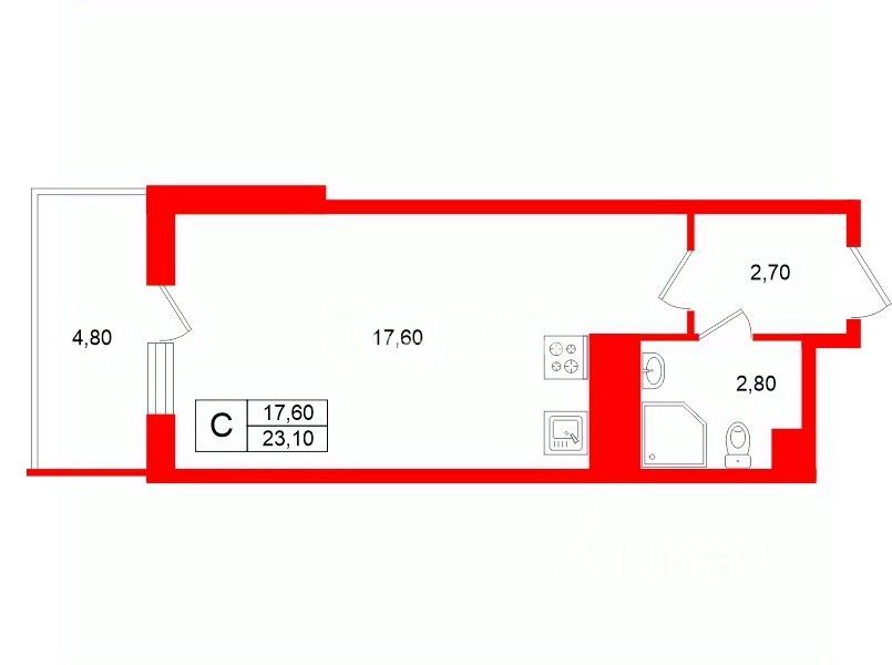 Общая площадь23,1 м²
