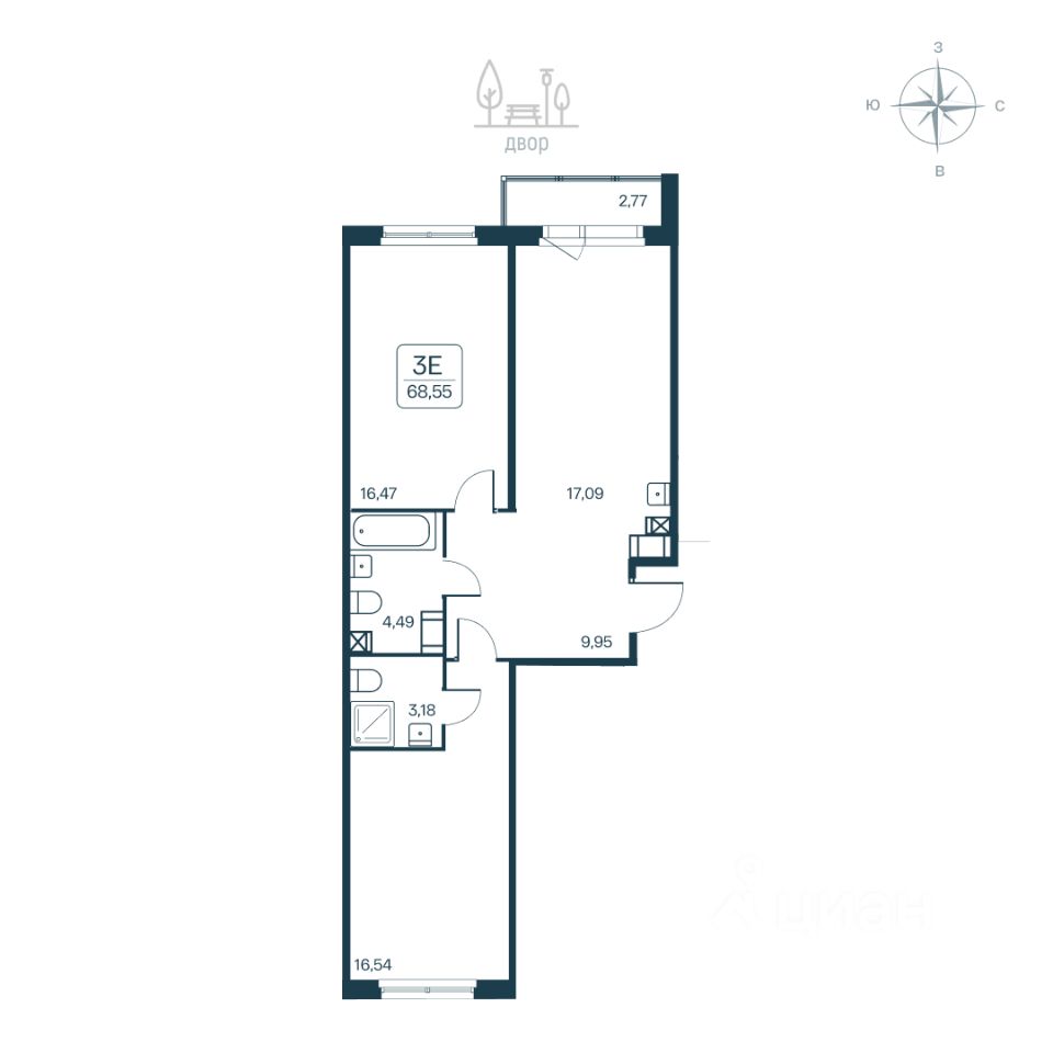 68,55 м²