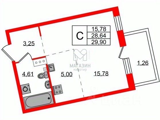 - Площадь - 30 м2