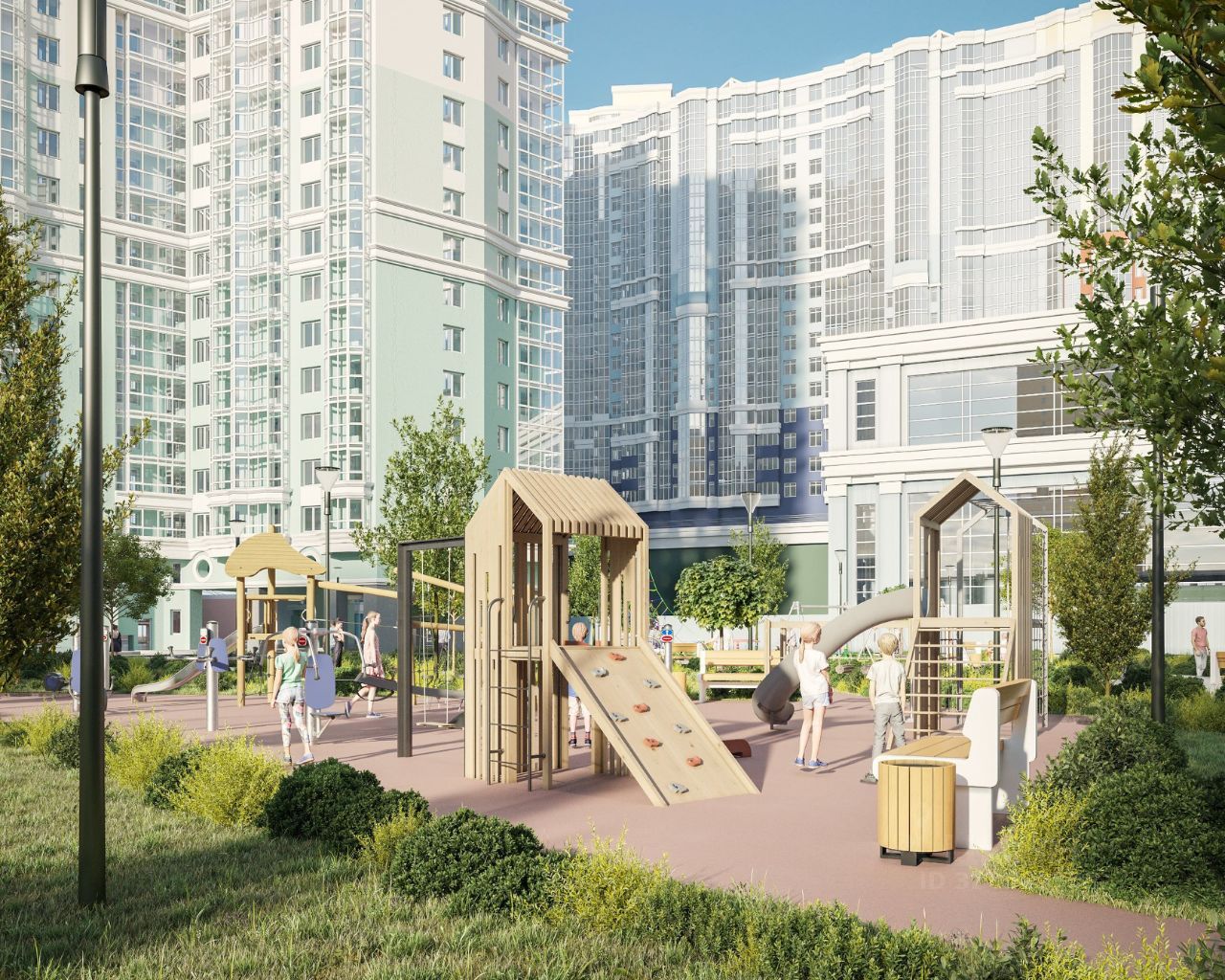 Благоустройство огороженной территории включает в себя организацию детских и спортивных площадок, зон отдыха и озеленение. Предусмотрены открытые гостевые парковки и подземные паркинги. Первые этажи отведены под коммерческие помещения. В шаговой доступности находятся детские сады, школы, медицинские учреждения, аптеки, продовольственные магазины и парки.