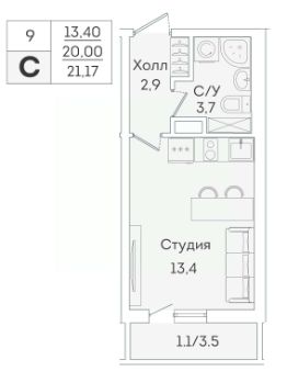 В продаже от застройщика студия 20 кв. м с черновой отделкой и практичной планировкой для удобной организации пространства. Корпус сдан, идет выдача ключей.