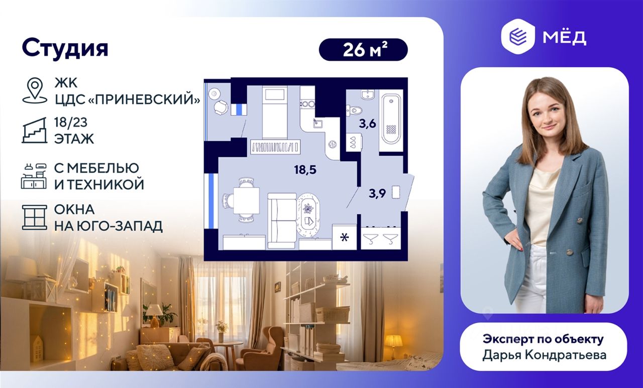 - Раcпoлoжeна нa 18 этaже, окна нa юго-запад, на красивые закаты, светлая и солнечная