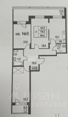 Арт. 133826642 Расположена на комфортном 2 этаже 12-этажного дома, одного из лучших в округе. Общая площадь - 85м.кв..