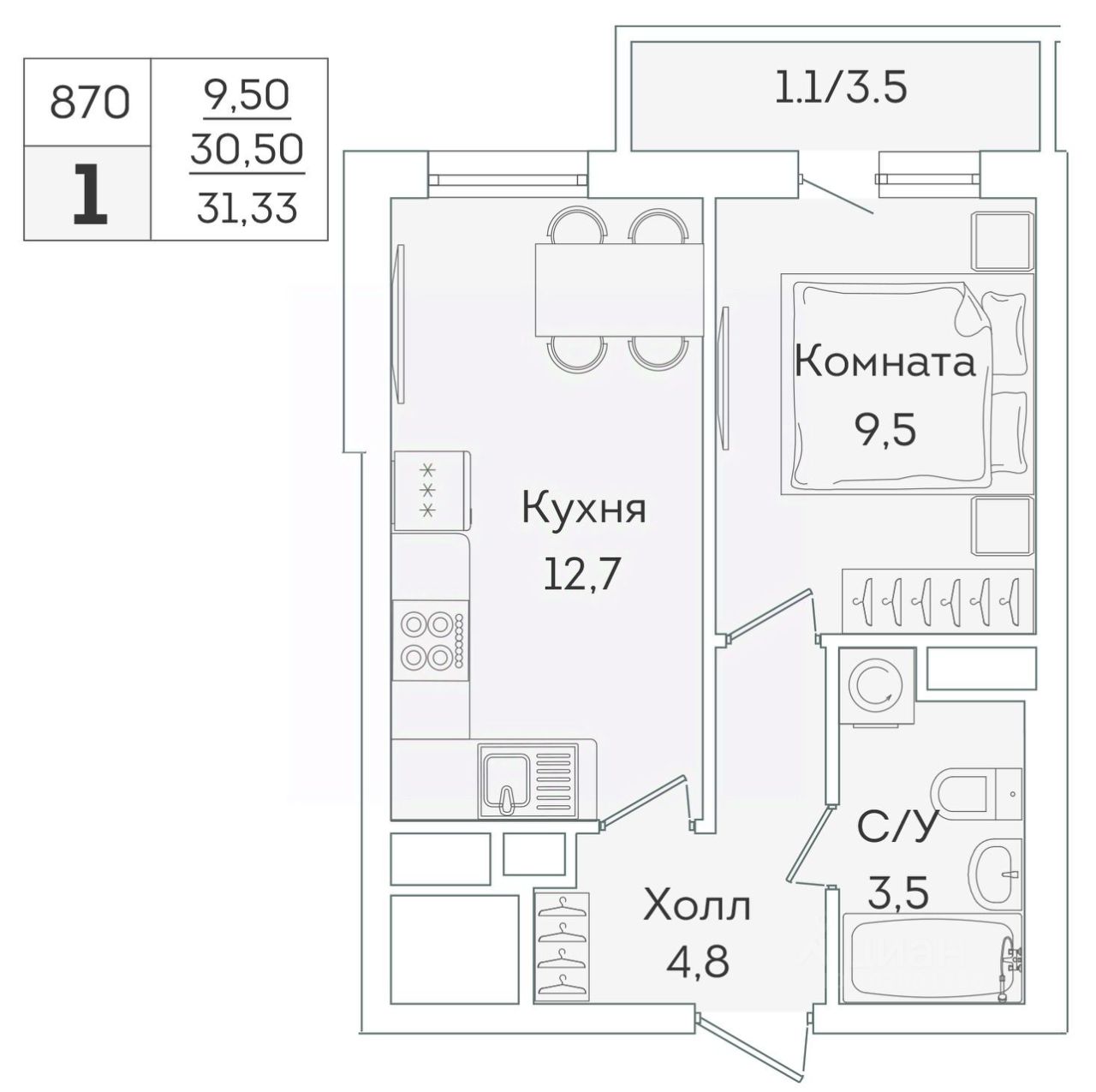 В продаже от застройщика 1 комнатная квартира 30.5 кв. м с черновой отделкой и практичной планировкой для удобной организации пространства. Корпус сдан, идет выдача ключей.