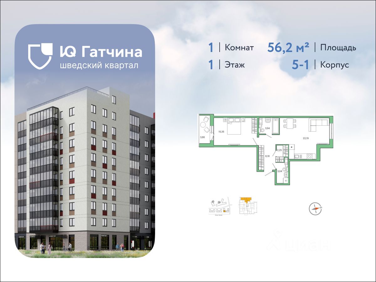 IQ Гатчина- жилой квартал комфорт -класса, в историческом пригороде Санкт-Петербурга городе Гатчина. Концепцию создания комплекса разрабатывало шведское архитектурное бюро Йоханнеса Товатта с европейским подходом к каждой детали. Транспортная доступность: 20 мин. на авто до КАД, 30 мин. до метро "Московская" и не больше часа до центра Санкт-Петербурга. В шаговой доступности от комплекса парки Гатчинского дворца, остановки общественного транспорта, а также ж/д станция "Татьянино". О проекте: комплекс имеет переменную высотность от 5-12 этажей, яркие фасады и безбарьерную среду. Места общего пользования выполнены по дизайн проекту, с современными бесшумными лифтами, колясочными и витражным остеклением. Все комнаты правильной квадратной формы, увеличенные окна с двойными стеклопакетами, высота потолков от 2,7 м2 до 3,02 м2 на последних этажах. Инфраструктура: на первых этажах комплекса работают супермаркеты, аптеки, салоны красоты и уютные кафе, прямо напротив жилого комплекса - крупный торговый центр. В квартале уже открыла свои двери современная школа на 825 мест и детский сад на 120 мест, а также в ближайшее время запланировано строительство второго детского сада. Благоустройство: квартал полностью имеет закрытые дворы, в которых каждый чувствует себя максимально безопасно, работает круглосуточное видеонаблюдение, доступ только для жителей и их гостей по системе IP домофония, концепция "дворы без машин", зеленые аллеи, ландшафтное озеленение, во дворах установлены современные игровые комплексы, спортивные площадки. Для владельцев животных предусмотрены лапамойки. Уникальный образовательный кластер: Гатчинский государственный университет (ГГУ), Государственный институт экономики, финансов, права и технологий, "Гатчинский педагогический колледж имени К.Д. Ушинского", ЧОУ "Первая академическая гимназия", МБОУ СОШ No12 "Центр образования", Детские сады No26 и No52 Первый дома комплекса уже сданы и заселены. В комплексе так же работает "Живи клуб", который объединяет жителей общими идеями и хобби.