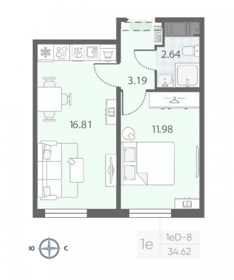 Продается 2-х комнатная квартира с евро планировкой (34,6 м²) на 17 этаже. Выполнена качественная чистовая отделка "Comfort Wood": ламинат под дуб, фактурные обои, плитка в санузле. Формат "заезжай и живи".