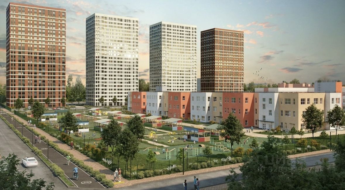 — На территории: школа, детский сад, спортивные и детские площадки, пешеходный бульвар.