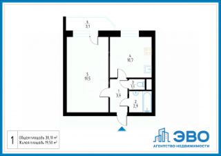 Квартира с эргономичной планировкой: просторная комната с застеклённый балконом, правильной почти квадратной формы кухня, раздельный санузел. Выполнен качественный ремонт от застройщика. Окна выходят на восток.