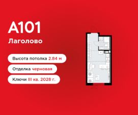 Студия площадью 23.61 в ЖК "А101 Лаголово" на 3 этаже. Квартира без отделки. Вид из окна на улицу. В квартире 1 санузел. Высота потолков 2.84 м.
