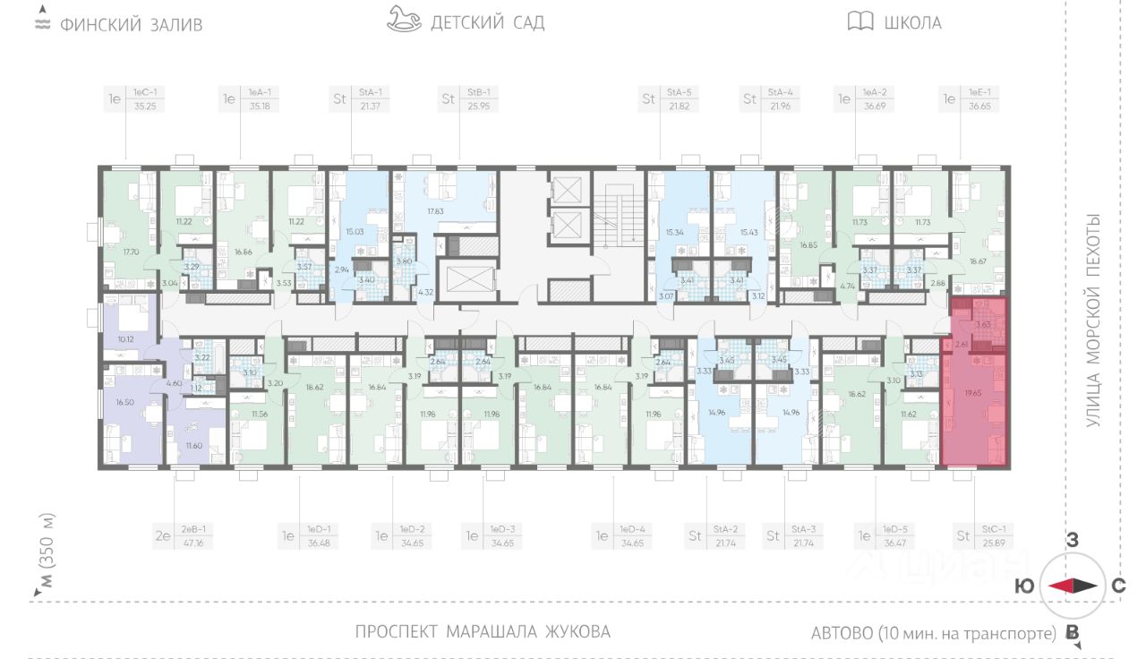 Продается студия в ЖК "Морская миля" на 9 этаже. Общая площадь составляет 25.89 кв. м. Квартира с чистовой отделкой. Жилой комплекс "Морская миля" располагается по адресу Санкт-Петербург, Красносельский.