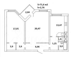 • Две изолированные комнаты, просторная кухня, гардеробная (кладовка), сан. узел раздельный.