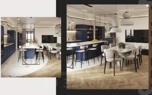 • Гостиная (47 м²) и смежная с ней кухня-столовая (32 м²) — идеальный ансамбль для приемов гостей и уютных семейных вечеров.