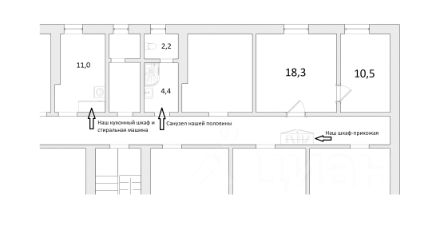 Продаются две смежные комнаты площадью 18.3 м² и 10.5 м² в коммунальной квартире. Главное преимущество - дом находится всего в 5 минутах ходьбы от станции метро Спортивная.