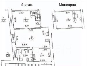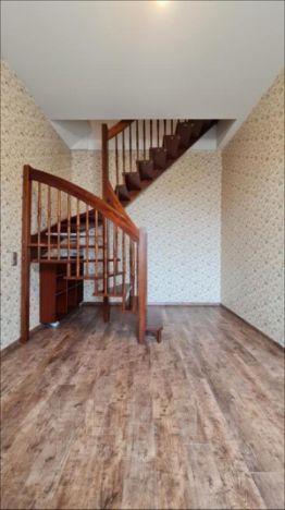 На полу в кухне и комнатах благородная паркетная доска, в прихожей и ванной плитка. Высота потолка на первом уровне 3,15м, на мансарде от 2,6м до 3,6м. Квартира свободна для меблировки под Ваш вкус и потребности, кухня из дерева с варочной панелью и встроенным холодильником остается.